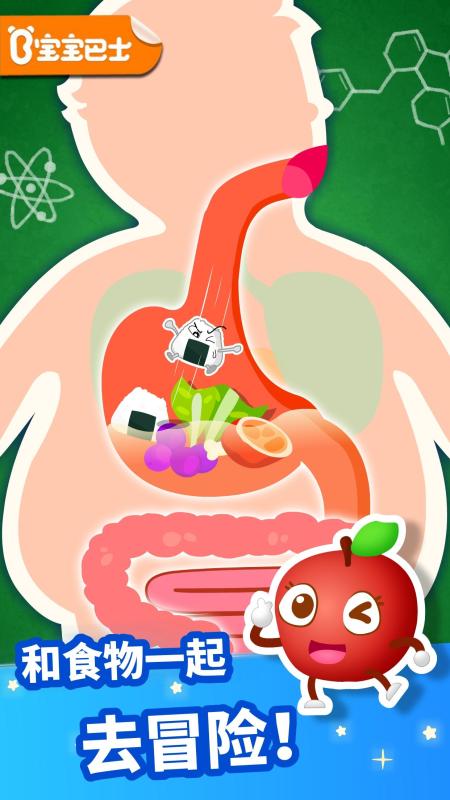 吃下的食物去了哪里?“咕噜噜”的肚子该如何消化食物?想知道身体的消化“魔法”吗?来【奇妙的身体冒险】就知道啦!口腔粉碎机、胃部消消乐、小肠塔防战,瞄准食物,准备出击!掌握消化常识,养成健康饮食习惯,拒绝暴饮暴食!——产品内容——【消化小科普】穿越口腔、胃部和小肠,掌握咀嚼、消化、吸收等神奇功能;【游戏大比拼】出动牙齿兄弟,嚼碎食物快又准、发射胃酸炮弹,瞬间消化食物;【拟人化教学】牙齿兄弟和环‘胃’工人,带你体验有趣分工,形象生动;【有声认知图】宝宝专属的身体地图:消化器官大声读,消化功能轻松学;【趣味剧情】小王子吃的太多太着急,肚子疼的哇哇叫,正等你来解救呢!——产品特色——趣味动画,开启冒险之旅;激萌音效,让游戏更动感;贴心引导,宝宝一秒上手!宝宝巴士专注于移动智能早教产品研发,以蒙氏(蒙特梭利)教育作为理论依据,以五大领域作为划分的具体依据,根据学龄前儿童不同年龄段的敏感期特点和学习重点来设计产品,构建出“年龄+能力”的多元产品体系。让孩子在游戏中独立思考,自由学习,享受探索世界的乐趣。_________设计理念:宝宝巴士(BabyBus),专注启蒙,而不仅仅是教育。我们专注于启发,而不只是学习。我们专注于能力培养,而不只是单一认知。我们专注于寓教于乐,而不是填鸭式教学。宝宝巴士,快乐启蒙!全球2亿家庭用户的早教首选,您身边的幼儿教育专家!搜索【宝宝巴士大全】,就可以下载宝宝巴士的所有早教APP了哦~在宝宝巴士,我们自己也身为父母,所以非常重视儿童的健康和隐私。下载应用前,您可以从这里阅读我们的隐私政策:http://cn.babybus.com/index/privacyPolicy.shtml_________欢迎联系:微信:宝宝巴士微博:@宝宝巴士:http://www.babybus.com邮箱:ser@babybus.com