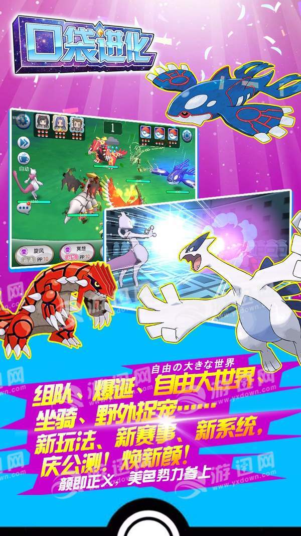 《口袋进化》是首个新世代资料片版本。新世代在原有的精灵收集养成、GBA策略对战、RPG角色冒险致敬情怀的基础上,引入了坐骑、组队、双打等等一系列全新革新升级。史上最强口袋3D美术和全新技术将再度完美呈现国民级精灵冒险之旅。