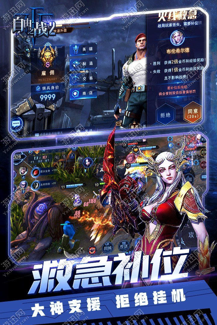 创新的雇佣玩法!更真实的佣兵身价!超燃的天榜战场!在《自由之战2》中,传统的MOBA排名变得更有实际意义,而荣誉也将变得更有价值。