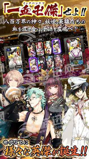本作的抽卡系统称为“鹡鸰台”,和传统的卡池设定不同,鹡鸰台通过配对英杰诞生新角色。游戏中玩家扮演“独神”培养八百万界的人、神、妖等和恶灵展开战斗,在这一过程中,通过执行一个名为“一血万杰”的秘仪,可以混合不同英杰的血统诞生新的后代。游戏中一共有人、神、妖三大种族,不同种族之间可以互相配对繁衍子孙。