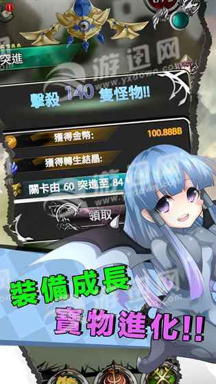 玩家可以透过转生获得转生结晶去购买或升级宝物,每一个独特的宝物都可以令你产生更高伤害及不同的数值加成。