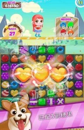 2、匹配3个以上的糖果即可消除它们哦