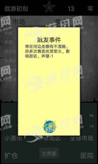 我卖的真是军火是一款趣味的文字剧情游戏,游戏的剧情十分荒谬,玩家从一个捡垃圾的少年摇身一变成为世界著名的军火大亨!考验你经营的功底了!