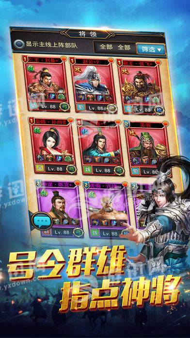 3.超多的关卡等待你的挑战,关卡通过之后将会获得名将。