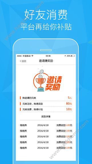 4、【二级补贴】你邀的人有消费我们还给你返钱。