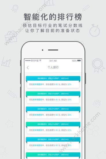 2、【智能化排行榜】:预估目标行业的笔试分数线,让你了解目前的准备状态。