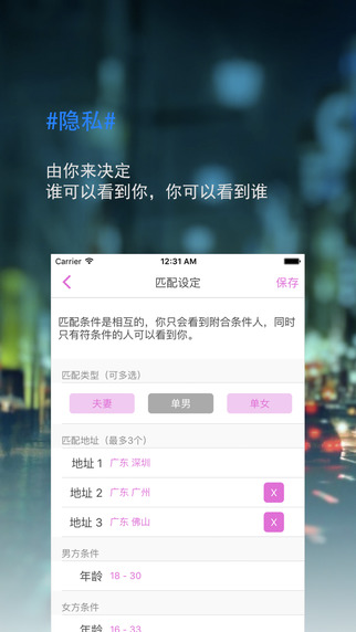 3、由您来设定:什么类型的人才可以看到您,实现隐私和地域隔离;