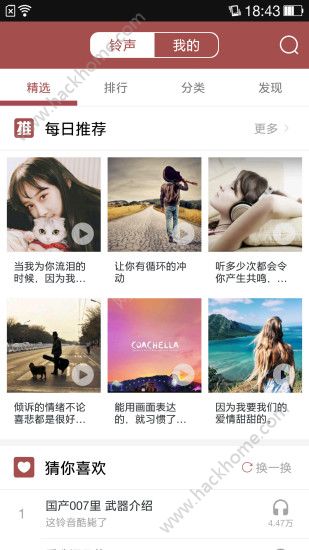 1、试听下载设铃,百万精品铃声大全一键设置为来电、短信、闹钟、铃声,炫彩铃声更可自己打造。听音识别草莓做到,草莓铃音为您量身打造,还自己一个炫酷的声调。
