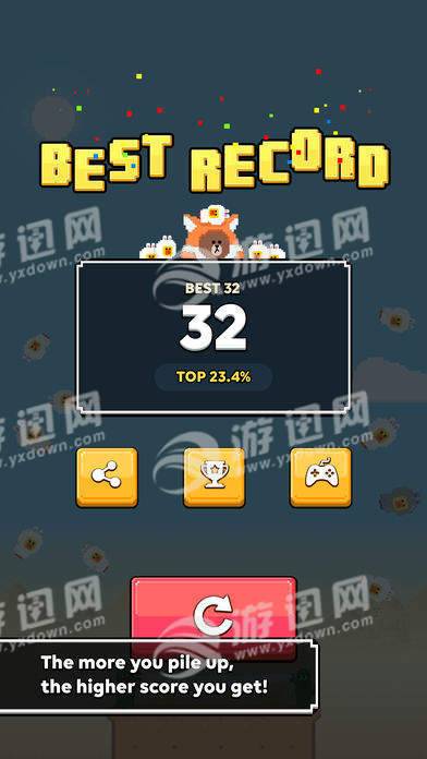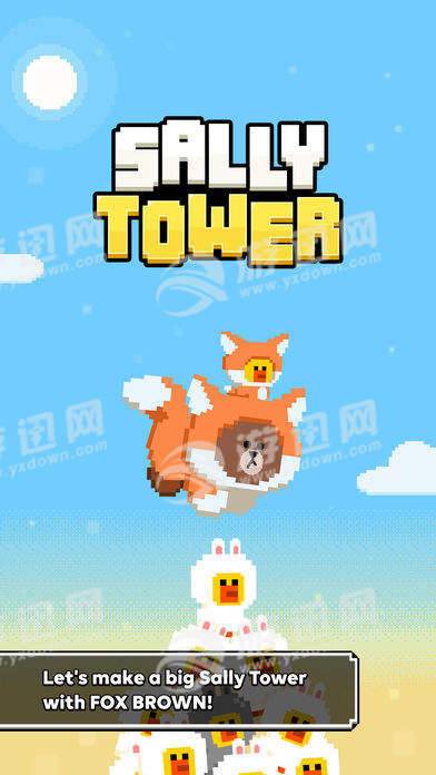 SallyTower是一款由Line旗下游戏团队推出的超萌Q版像素画风的益智休闲游戏!玩法类似于叠罗汉!你细腰控制一位会飞的小熊将小鸡Sally一个个叠起来,数量越多,分数越高!