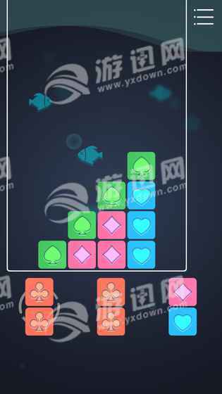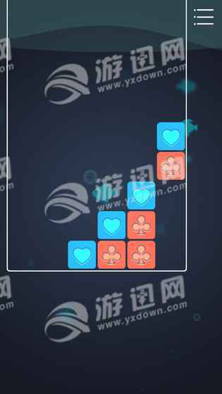 不同于其它消除游戏玩法。有三组卡片通过点击调整位置,拖放到棋盘中,当有四个相同的卡片连接到一起的时候,就可以被消除。