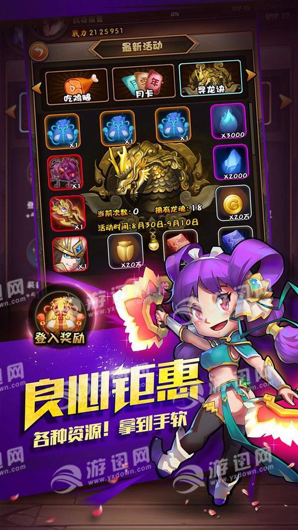 游戏很人性化,对非VIP成员即VIP0玩家也提供了特权奖励,每日可以领取到一定的铜币;对于VIP1-VIP12的玩家,随VIP等级增加,每日可获得的特权奖励更多,铜币领到手软。