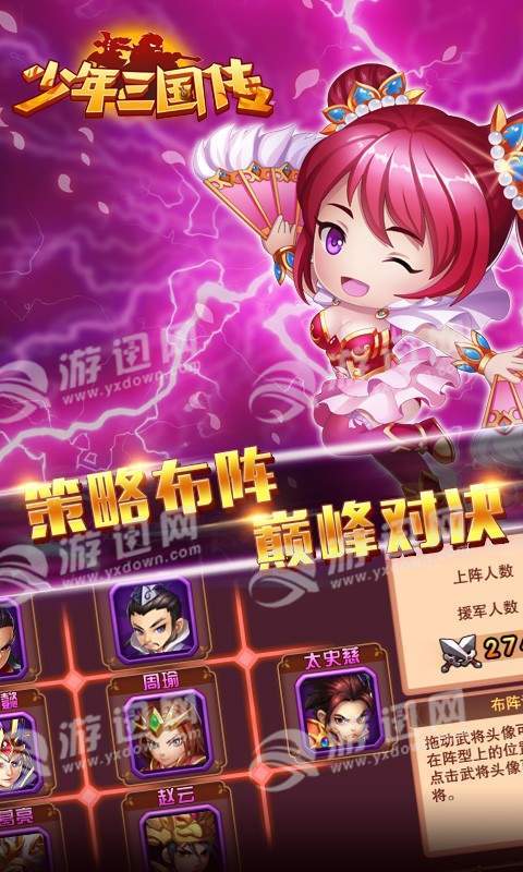 少年三国传变态版是一款延续了经典回合制元素的三国卡牌手游新作,游戏打造出了海量Q萌的三国无双少年武将,融合了即时战斗动员元素,同时还有更加轻松写意的挂机模式,三国天下,等你来一统争霸!