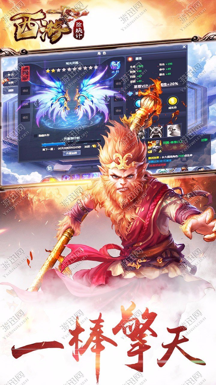 《西游除妖计》是一款以西游记为背景改编的角色扮演类手游!二郎神、三太子、牛魔王、孙悟空和小龙女五大神将随行取经!七十二变,职业任意切换,大闹天宫,跨服无限制PK!优秀的社交系统,给玩家带来完美的互动与体验。梦回西游,少写一段新的西游传奇!