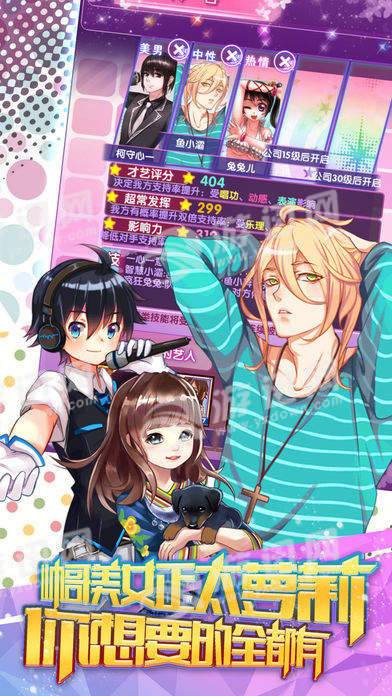 梦幻明星模拟ol是一款二次元游戏画风的模拟养成类型的卡牌手游,玩家可以在这里培养属于自己的偶像,并且将会和你的偶像一起走过众多的演艺生涯,更有超多的剧情任务让你能够轻松的打造属于你的娱乐王国,喜欢的小伙伴快来试试吧。