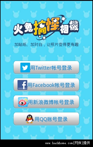 3400多款照片加工素材,全球最多!!!火兔搞怪相机,是可以随意在照片上加贴纸、加文字的照片加工软件。轻轻松松,就让你的照片立即变得更加有趣。从此,可以跟普通单调的照片saygoodbye啦。你会发现,生活处处充满欢乐和惊喜!拥有火兔=拥有全球最大的照片加工素材库: