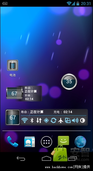 -1x4高清主屏幕窗口小部件,可显示电池电量、电池寿命、充电剩余时间以及系统开关状态