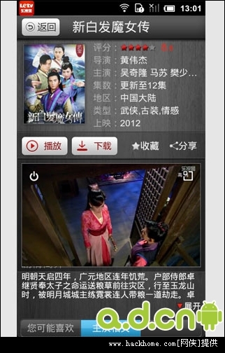 乐视影视Android客户端是由乐视网倾情打造的一款精品视频应用,包括视频的在线播放,收藏记录,播放记录,多任务下载,分类搜索,微博转发和评论等功能.乐视网拥有国内最大的正版影视剧版权库,目前拥有90000集电视剧、5000部电影的版权,囊括了2012年热播影视剧60%以上的独家网络版权,2013年热播影视剧40%-50%以上的独家网络版权。其中2012年Q2-Q4乐视将为用户呈现出173部独播剧,20部五星大戏!内容分为电影,电视剧,动漫,娱乐和综艺等频道,通过优秀的转码分发技术,提供更流畅的视频播放和多任务下载功能体验.