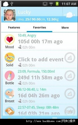 -能够追踪宝宝的情绪、饮食、睡觉、尿尿/便便、健康、玩耍、洗澡、接种疫苗、药品等等;