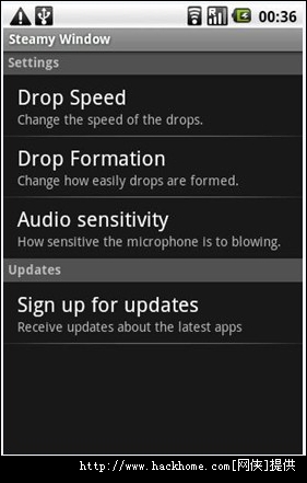 屏幕水雾即蒸汽覆盖整个屏幕,用手指在屏幕上来回划动,会有水滴滴下。你还可以将画面作为背景图案,也可以发送给朋友。冲着手机的麦克风吹还可以补充雾气,非常很好玩! 在屏幕上书写时,有类似毛笔写字的感觉,不时有墨汁等滴下来,同时支持重力感应,晃动屏幕墨汁将随着移动适用型号:G2(Magic),G3(Hero),i5700GalaxySpica,BeholdII,i7500Galaxy