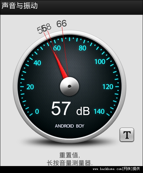 4.声音和振动(智能检测仪专业版):使用您设备的麦克风来测量噪音的分贝数,使用传感器来测量振动或地震;由于一些设备(索尼X10mini、LGP500、三星GT-I9001、中兴设备)无法识别噪音,因此仅显示了振动按钮。