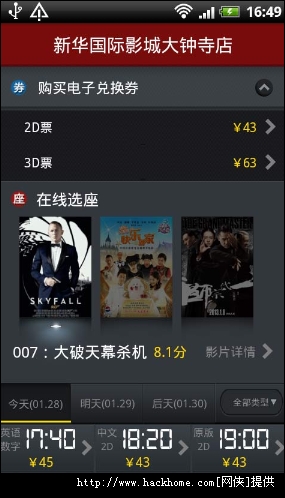 更多手机订电影票软件内容,请进入专题:https://www.hackhome.com/zt/sjddyprj/