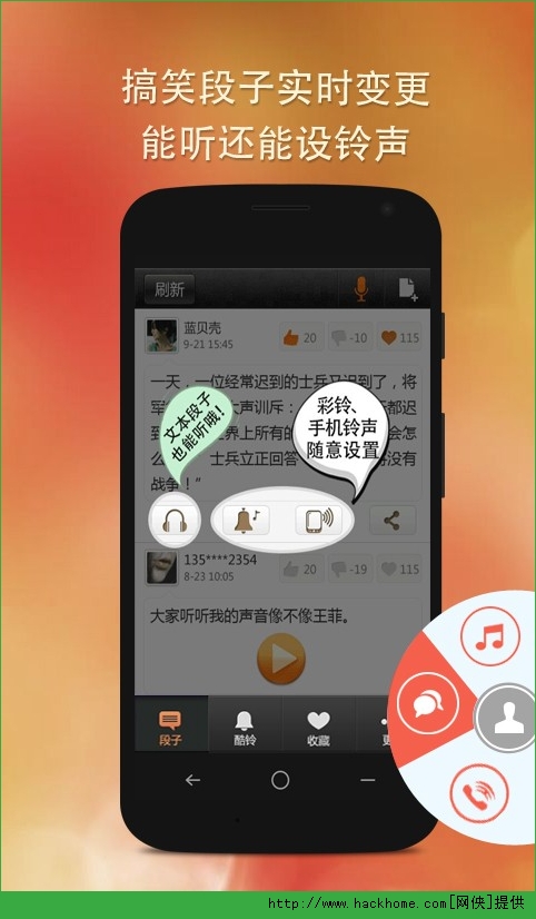 酷音秀秀软件功能:1、海量爆笑段子任你看,文本段子可试听。