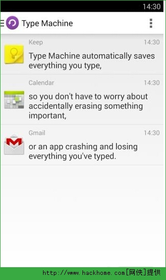 文字时光机(TypeMachine)是一款手机记录软件,可以把你的每一次输入都原封不动地记录下来,无论丢失了哪些文字,你都可以在时光机里找回。