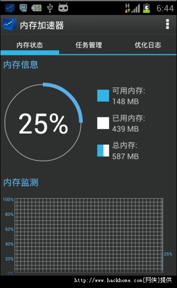 -及时报告与监测内存状态:内存加速器会通过及时更新图表显示手机的总内存,以及现有可用内存和已用内存。