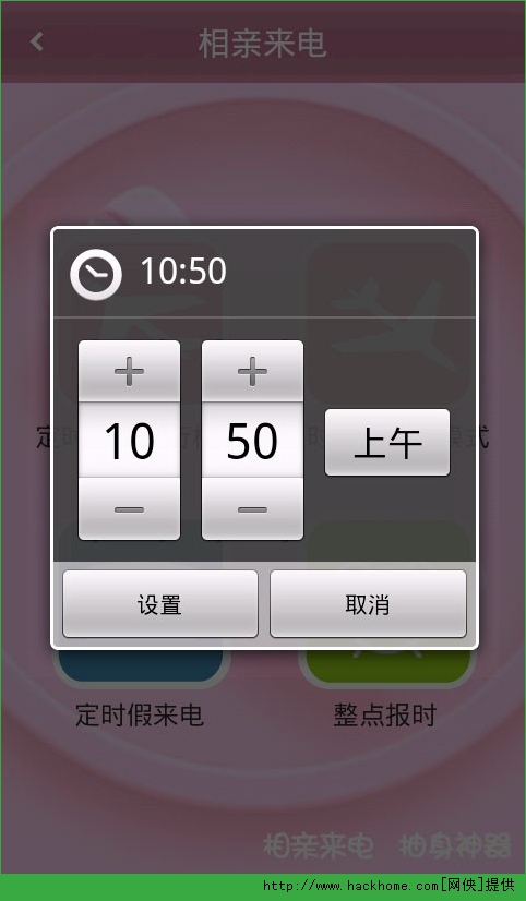 相亲来电安卓版是一款免费的来电辅助软件,有的时候我们不想接陌生人的电话,或者相亲时,对对方不满意,又不方便离开,怎么办,该软件可以帮助你,只需要你设定时间,到时就会有一个模拟的电话打过来,方便快捷,解除你的烦恼!赶紧行动吧!