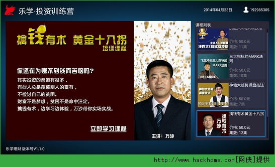 乐学理财tv电视版是一款电视理财应用客户端,你可以通过网上听课来学习理财,针对理财投资进行培训提供理财方法和专业技术,拥有众多理财界名家、学者、业内人士、民间高手,通过全面的课程设置来满足用户需求。