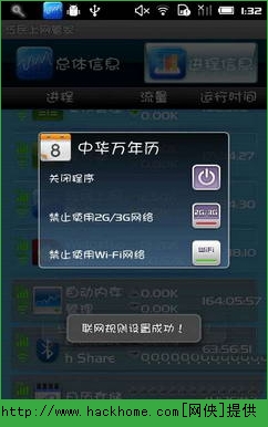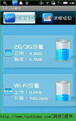 5.流量监测:监测2G/3G以及wifi流量,包括上传和下载的流量数据;