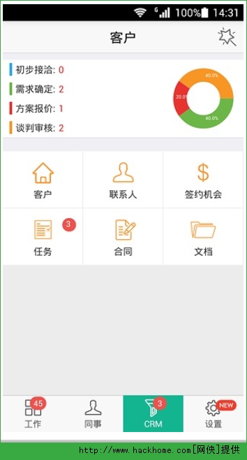 6、CRM:目前有包括客户、联系人、签约机会三大模块基于销售漏斗的原理设计的轻量级客户关系管理;