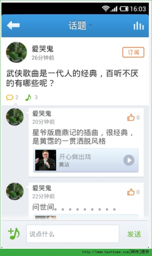 2、音乐爱好者在这儿讨论音乐话题,分享音乐喜好;