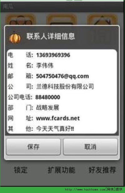 南瓜名片安卓版:一款通讯录及名片管理软件,它几乎可以满足你对名片管理的任何需求,能有效的帮你维护和拓展人脉关系。只要与对方交换了名片,该名片将具有永久的时效性哦~