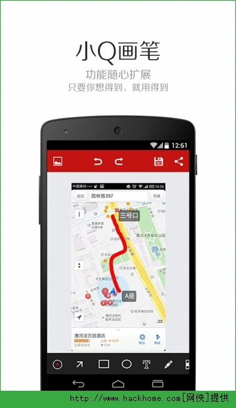 1.小Q画笔拥有最简洁的界面,极小的体积,提供箭头、形状、涂鸦、文字、剪切、马赛克6个标注功能,并可一键分享至微信或QQ好友,帮助你用图片进行最流畅的沟通。