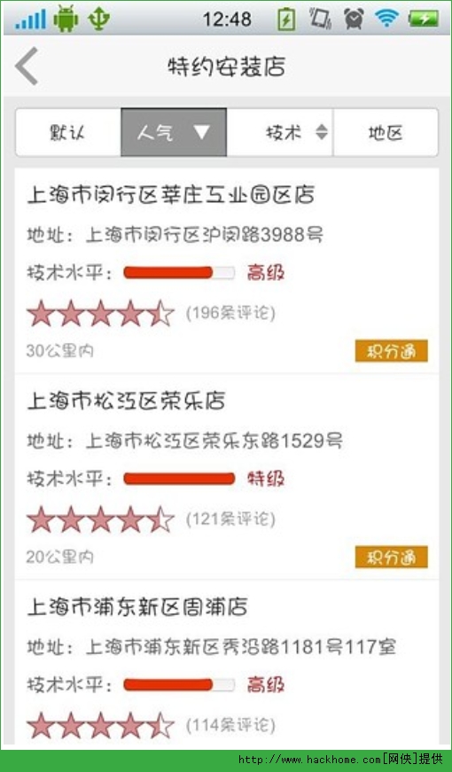 6、线下特约安装店查询,选自己最满意的;