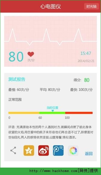 心电仪是一款由99健康网推出的用手机测试心跳的应用软件。该软件可以及时了解我们身体健康状态,无需借助任何外部硬件部分,只需使用您的智能手机或平板电脑的内置摄像头,便可迅速准确的得读出您的心率。网侠小编呼吁善良的小伙伴们,不妨给您的父母手机上安装使用下。