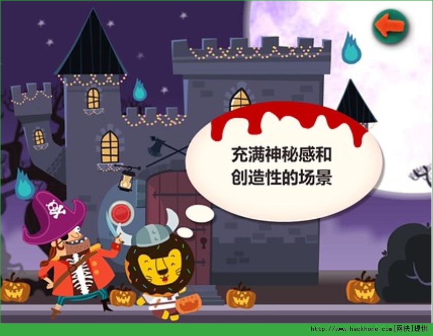 万圣节多纳学英语HAlloween安卓版:是一款情景互动了解万圣节的学英语软件。快通过本单元的学习,可以让孩子们学习到具有万圣节的相关单词和常用对话,体验万圣节风俗,看这帮古灵精怪的客人们的调皮捣蛋吧!