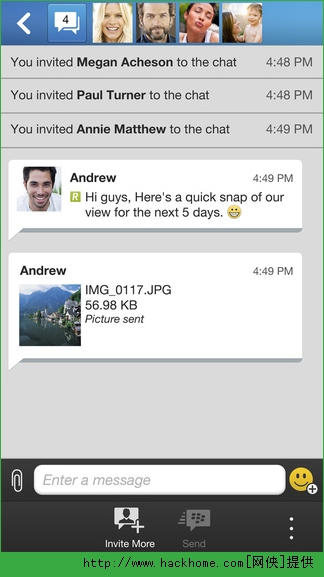 5.BBMGroup改进功能:通过电子邮件和短信邀请联系人加入BBMGroup。