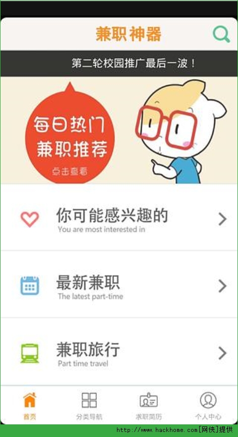 兼职神器安卓版:一款网络兼职工具,它以全面颠覆大学生兼职就业现状,杜绝欺骗为使命,以精品兼职信息推送为主。每日定时推送的信息皆通过大学生兼职网严格审核,绝无黑中介,闲暇的时候打开爱赚钱,动动手指,做做各种有意思的任务,就能轻松赚取真金白银哦~