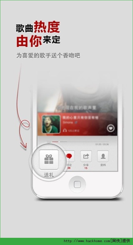 4、分享个人专辑,转发热门歌曲,赠送个性礼物,乐享私密聊天,串联各大分享平台,畅言各种感受心情,软妹熟女男神硬哥,无限好友陪你一起玩转;