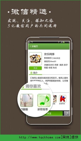 1、首家微信公众账号导航应用,支持一键关注微信号;