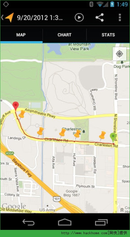 我的足迹googleMyTracks安卓版:一款行经路线记录软件,通过GPS记录你的运动路线、速度、距离和海拔高度,可即时查看数据,设成定时播报运动进度。在记录进行过程中,您可以实时查看数据,给路线添加注释,以及收听当前进度的定时语音通报哦~