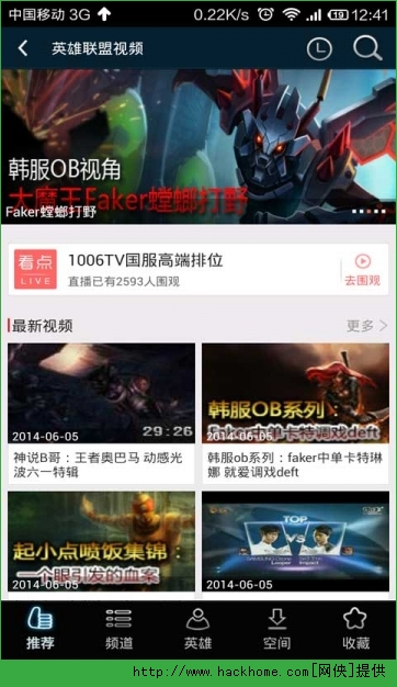2、提供"高手实战""名人解说""搞笑""各类英雄"等各种类型的LOL视频;