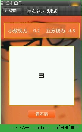 1本软件根据国际标准远视力表设计,以E字为视标,从大到小共15层,使用方便,显示小数视力和五分视力,让大家一目了然。