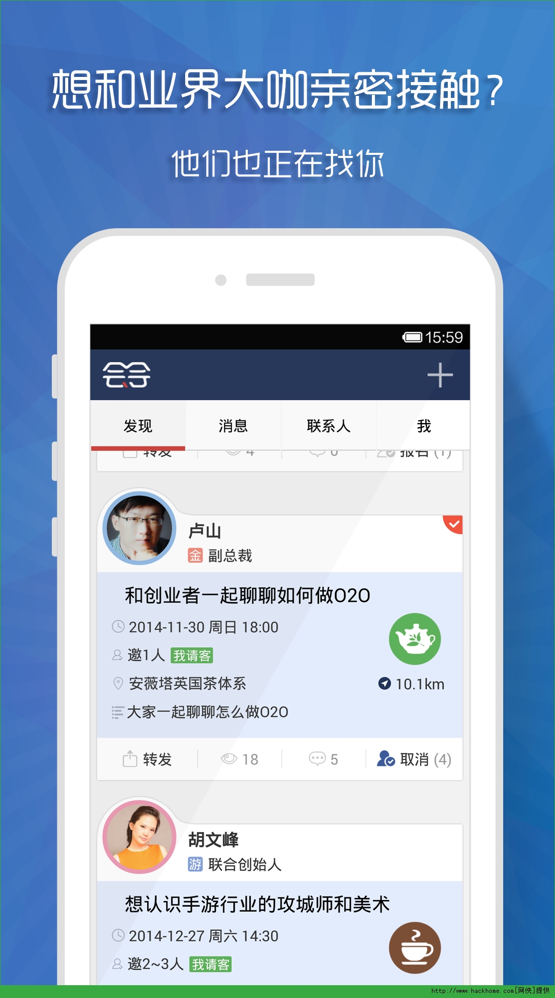 1、通过线上邀约促成线下见面:或许邀来吃饭的人解决了你工作上的疑问,或许约来喝咖啡的就是你未来的合伙人,或许一次见面让一个新产品诞生;