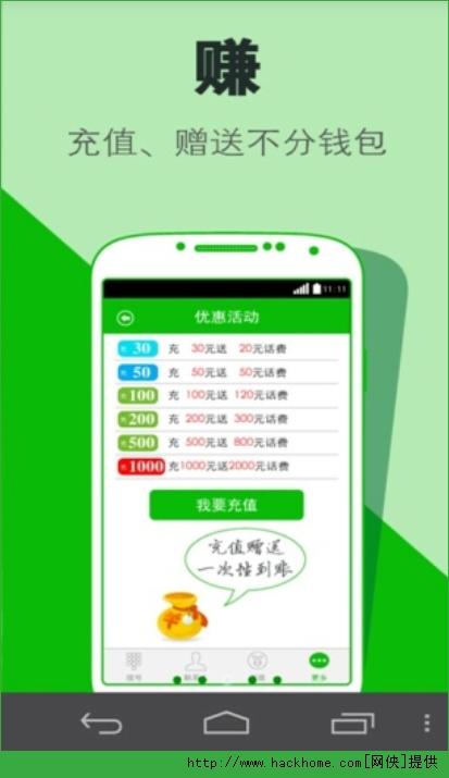 2.无需下载应用、玩应用赚话费,免除垃圾软件困扰;