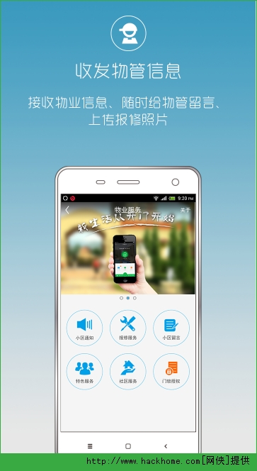 3、接收物业信息,随时给物管留言;