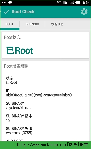 能够显示你的手机是否被root,以及相关root信息,准确可靠~!
