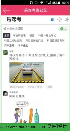 6、易驾考社区:闲暇可以和各地美女、帅哥一起交流分享学车的各种问题,场考、路考经验分享等!